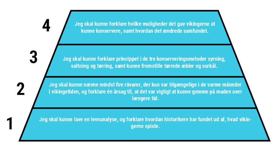 På figur 3 kan man se, hvordan min makker og jeg havde indtænkt progression i de læringsmål, vi havde opstillet for undervisningsmaterialet, afbildet som fundament for, hvordan god tværfaglig undervisning kan foregå.